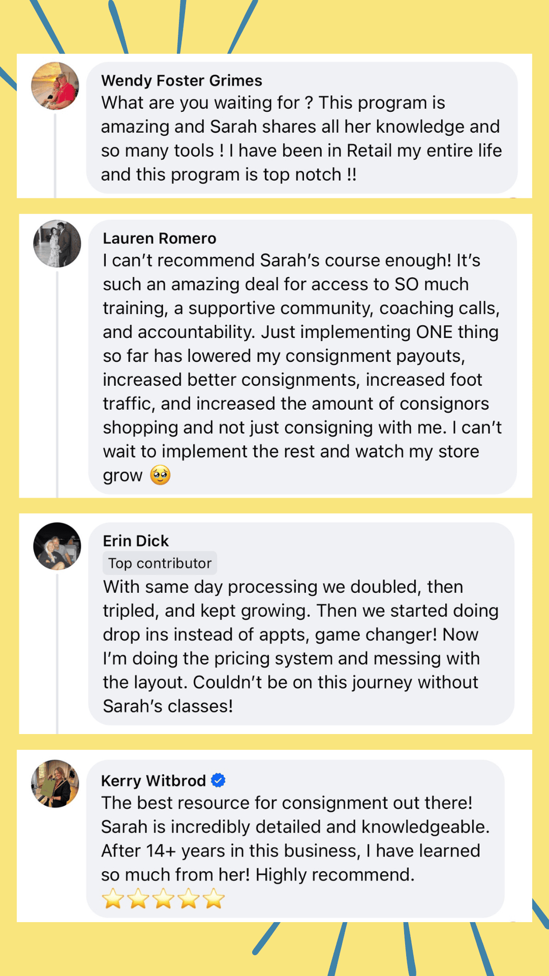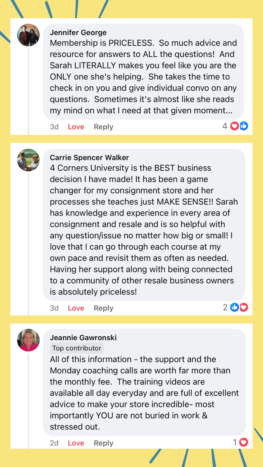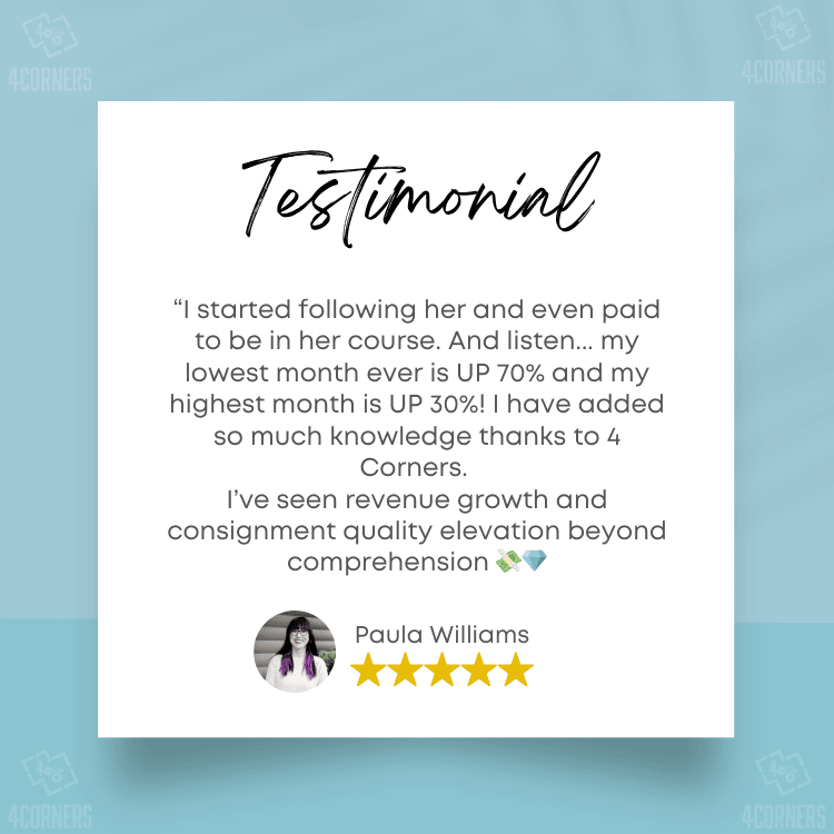 That's exactly why I created 4 Corners! These resources are made for Consignment or Buy-Out-Right Resale Store Owners who want to grow.